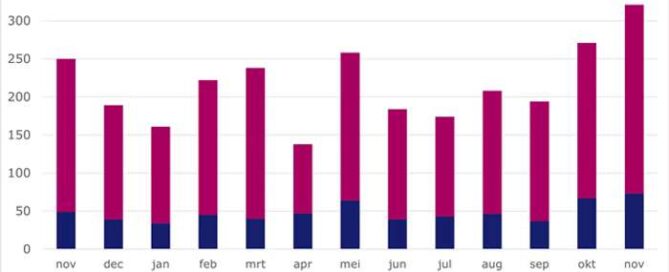 Rechtbanken hebben in november 321 faillissementen uitgesproken. Dit zijn er 50 meer dan in oktober*. Dit blijkt uit cijfers van de Raad voor de rechtspraak. Het [...]